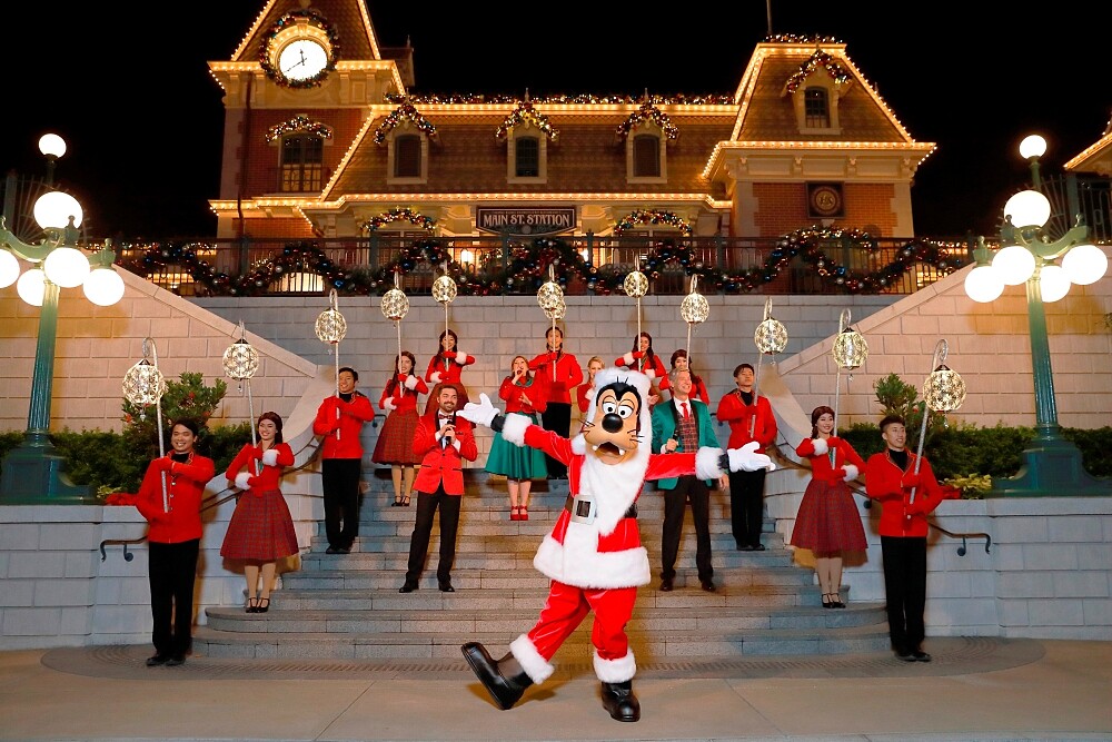 當夕陽西下後,香港迪士尼樂園會更加溫馨動人!延續聖誕傳統的「夢想成真聖誕樹亮燈禮」,將於美國小鎮大街上舉行。乘載著夢想與祝福的聖誕樹將點亮,並伴隨聖誕樂曲與漫天飄雪,肯定會令妳感動不已!最後還有歌詠團傳唱「聖誕歡送時刻」,屆時更會看到聖誕高飛出來歡送旅客,劃下完美句點。
