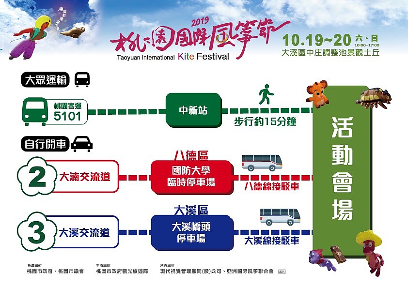 繼2018年首度舉辦過桃園國際風箏節後,2019年持續舉辦第二屆,以「童話世界」為主題,邀請來自士、法國、美國、德國、新加坡、韓國與台灣等將近20個風箏團隊,能同時看到千箏萬鴛翩翩飛舞的動人畫面,肯定會令人流連忘返。