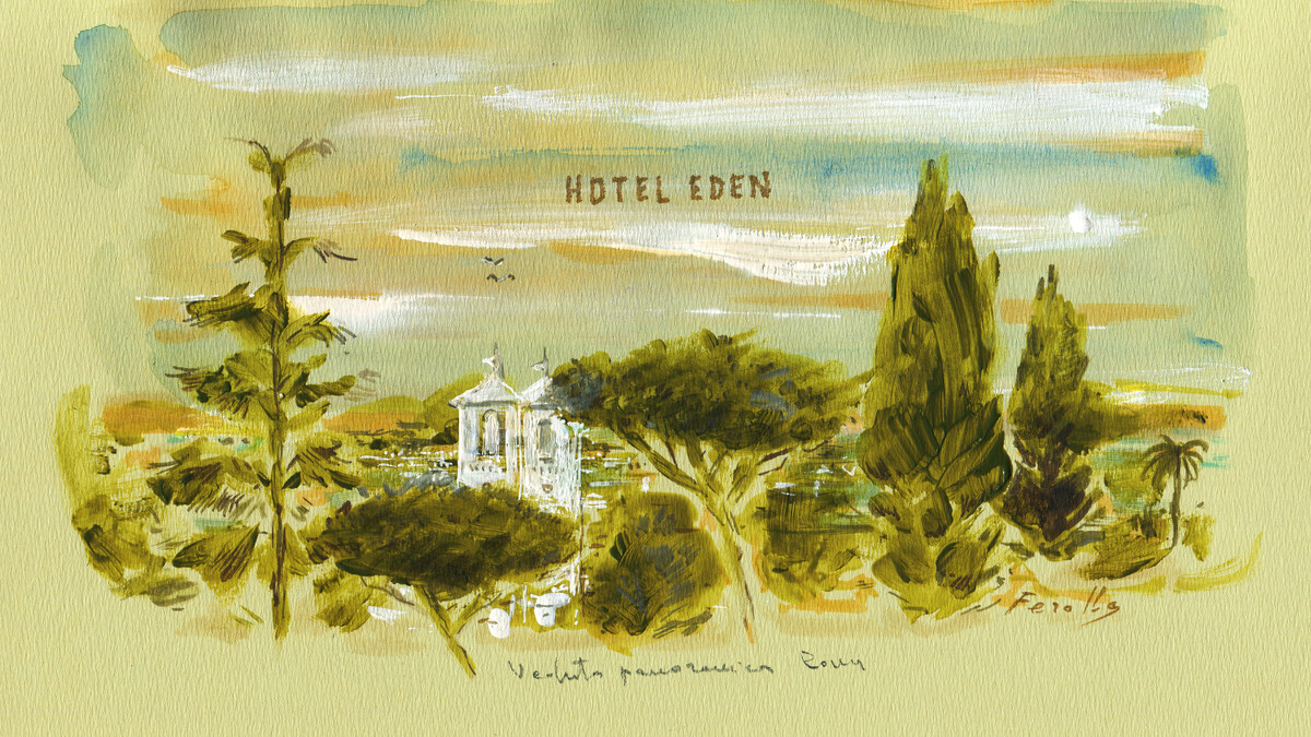 為求提供旅人更五感的體驗,羅馬伊甸園酒店現在開始了每兩個月一次的藝術家計劃,旅人將於酒店各處發現藝術家的足跡,他可能正在酒店大廳作畫,在La Libreria 或Il Giardino Bar描繪美好場景,甚至在廚房捕捉廚師 Fabio Ciervo的烹飪神情。羅馬伊甸園酒店這回邀請知名的歐陸時尚插畫家Andrea Ferolla 成爲首位進駐酒店的藝術家 (Artist in Residence)。