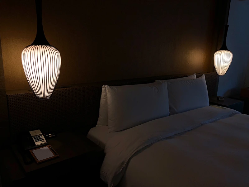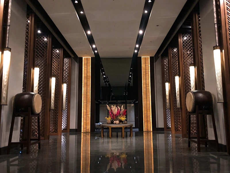 大多數五星級酒店風格都以摩登、簡約、現代為主,台南晶英酒店因鄰近孔廟,內部裝潢就與「儒學」結合,從大廳的窗簾格、瓦片,到到接待處有文房四寶「筆墨紙硯」元素,而房間內的「毛筆夜燈」也是貫徹此風格的設計。
