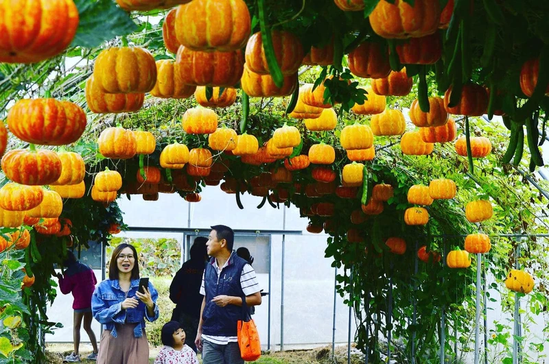 受到滿滿好評而再次舉辦的「2019桃園觀音萬聖南瓜節」,從10/19舉辦到11/3,有萬聖變裝、趴踢、鬼屋探險、南瓜辦桌及農事體驗等豐富活動。最吸睛的莫過於掛滿橘黃色南瓜的「南瓜隧道」,有著鮮豔又飽滿的色澤,立刻成為IG超夯打卡景點。