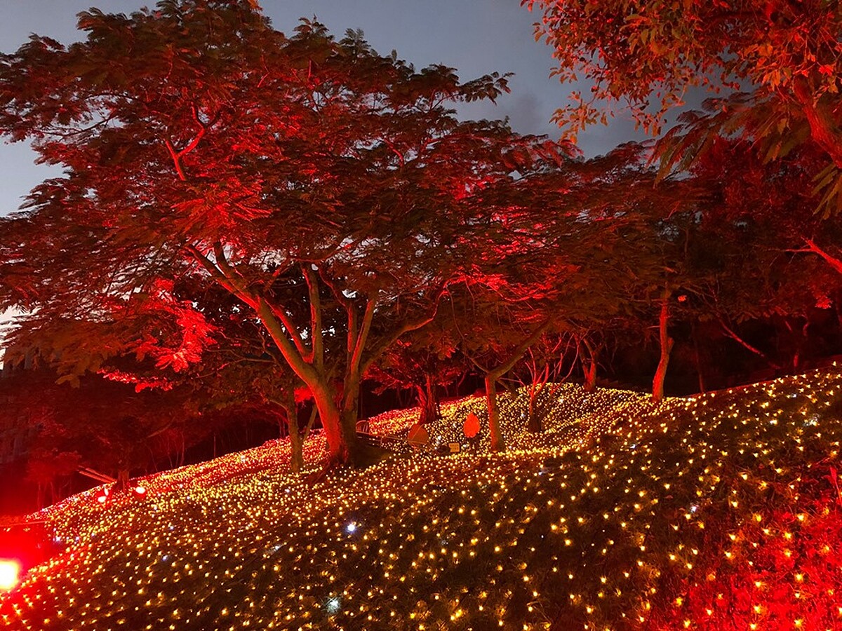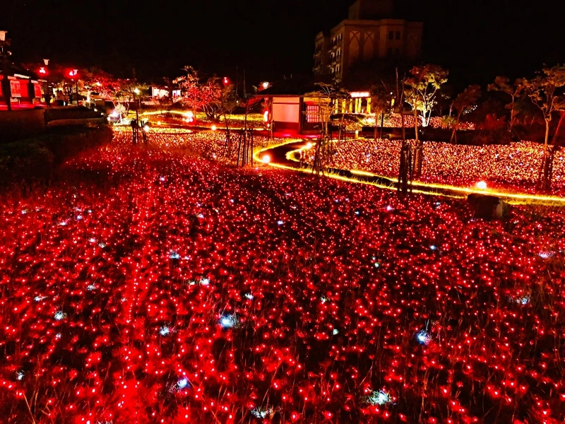 有著「台灣四大名湯」之一的屏東四重溪溫泉公園,每年到了冬天就會舉辦溫泉季,繼去年以紫色星海鋪滿公園後,2019年以「楓紅」為主題,公園中有火紅色的燈海,配上兩側的楓紅交織出浪漫唯美的氛圍,令許多網友大讚:「好美!」