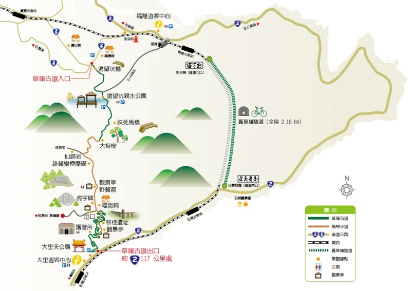 範圍:草嶺古道沿線、福隆遊客中心到大里遊客中心及其周邊景點
