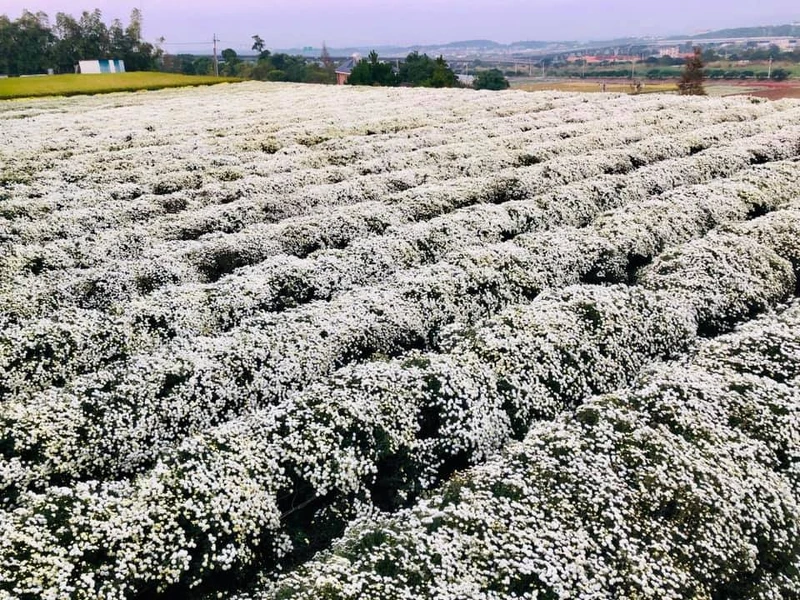 只不過杭菊的花期並不長,約3~4週,11/10前後是最盛開之時,目前已經進入採收期,會隨著時間,花況會愈來越稀疏。但官方粉絲團說明本週末前往都還能觀賞到「11月雪」美景,但要注意別隨意採摘或踐踏花朵,觀賞時也要留意田埂狹窄濕滑。