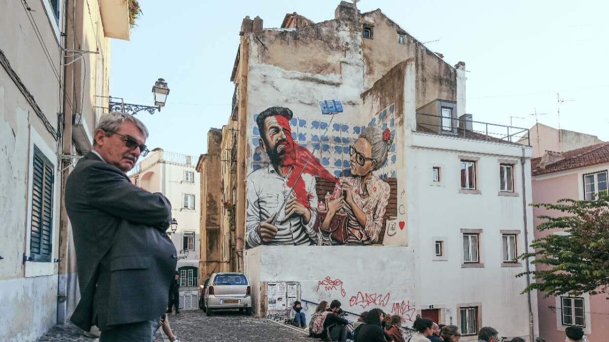 除了收集花磚、塗鴉、販售亭和鐵椅外,街坊間的老太太是我的心頭好。他們總倚在陽台窗邊不發一語,但街上什麼事都看在眼裡,當地人貼切地稱她們為「社區監視器」,也成為葡萄牙的另類風景。此外,葡萄牙街頭還有非洲小孩賣力舞蹈,巴西樂團彈唱奔放的南美情調,人們為了足球而瘋狂,為支持同志平權而遊行,還有各種傳統節日的慶祝活動,持續讓城市注滿溫暖和歡笑。