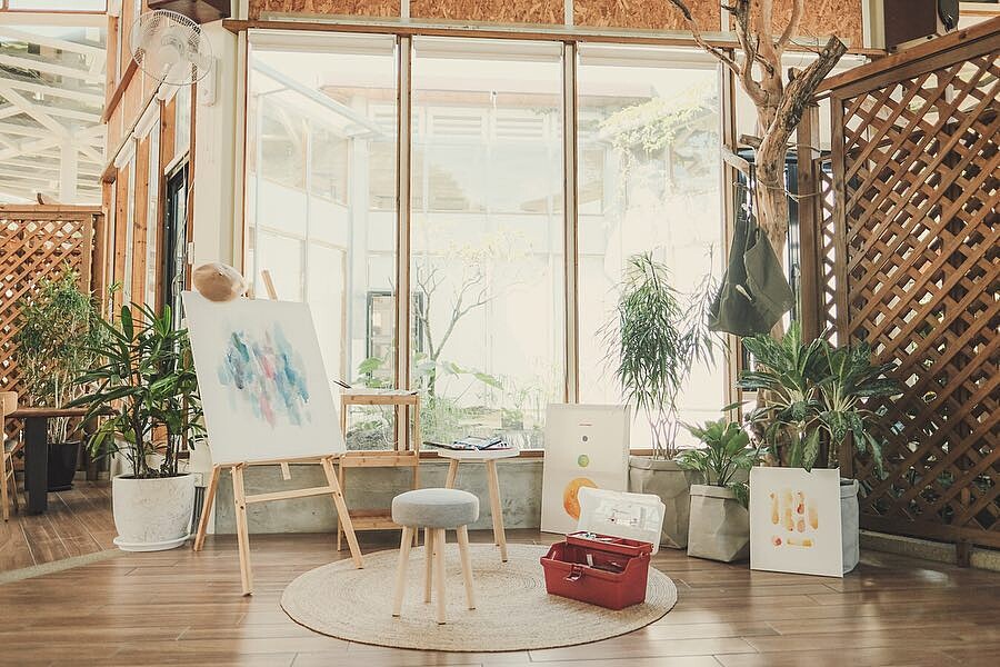 這間房間是一對父女共同創作而成,印入眼簾抽象又讓人震撼的畫作,與繽紛色彩相間的牆壁,是葉宿文旅的人氣客房之一!