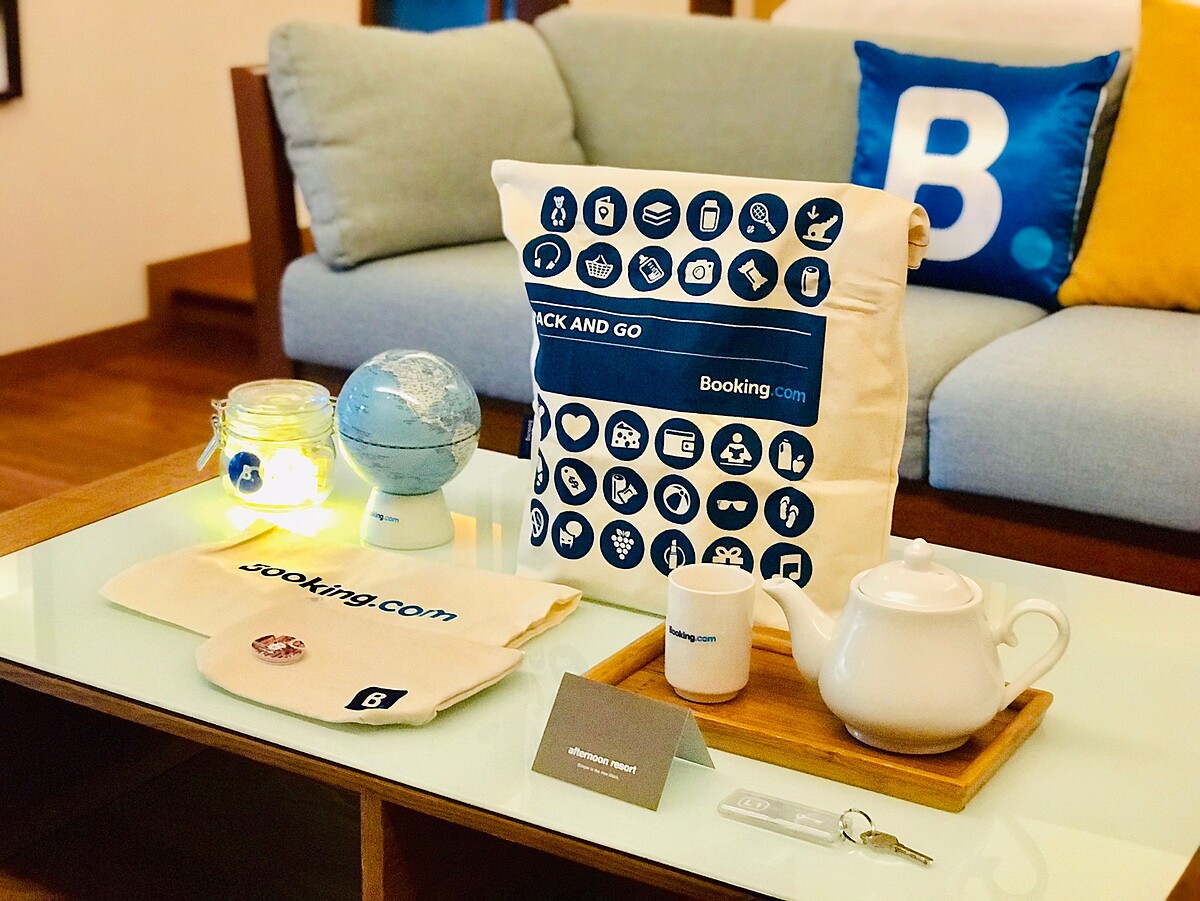 Booking.com聖誕旅行福袋活動:凡於12/24平安夜預訂雙人房的第一組客人,即可獲得Booking.com旅行福袋一組,內含多樣旅遊小物(帆布袋、漱口袋、化妝包與地球儀存錢筒等)。