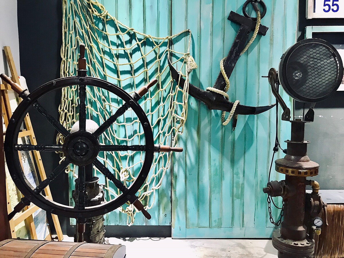 民宿吧檯由steam設計團隊設計使用不同的汽車、機械零件組合而成~