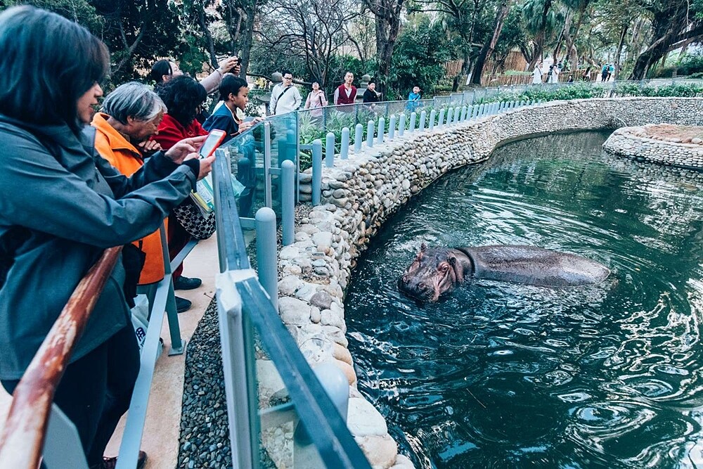 堪稱最大亮點之一的2號「大象門」,是由日本設計師模仿德國哈根貝克動物園Tierpark Hagenbeck 大門所建造,為了還原最原始藍綠色,整整脫了13層的漆才完成!動物園內的人氣明星「河馬樂樂」也有了兩倍大的新家,更特別為了小朋友設置約120~130公分的超低玻璃觀景窗,爸媽不用費力舉高孩子,也能一起看河馬的可愛模樣。