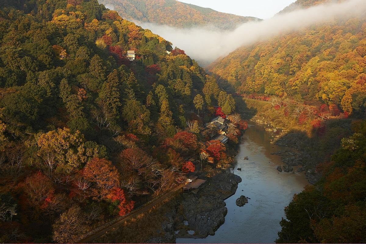 遠離京都的市中心,平安時代,西邊的嵐山以貴族的度假勝地聞名,如今依舊有靜謐優雅的風情。座落於嵐山河畔旁,虹夕諾雅 京都(Hoshinoya Kyoto)本來為貴族的私邸,現在則成為最具當地特色的夢幻去處。乘舟溯大堰河而上,約十分鐘後,就能看見隱身於壯麗溪谷中的虹夕諾雅 京都。這裡無疑是喧囂中的一方淨土。