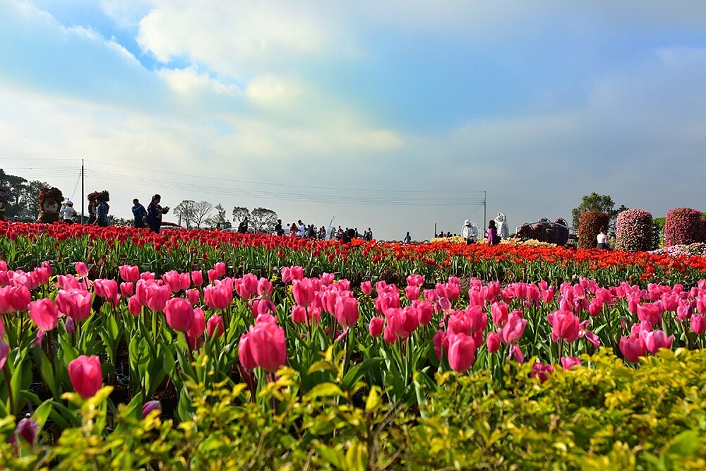 位於台中的「中社觀光花市」,即日起進入一年一度的鬱金香季,歐式花園裡有著由淺到深如白色、淡粉、深紫等50個品種的鬱金香,預計花期會到3月下旬。數量更是多達30萬株,宛如披上一條繽紛的七彩花毯,實在美不勝收。