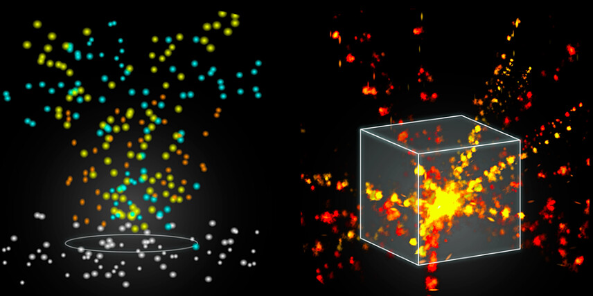 千田泰広的《崩世光景 Brocken》則重現蜂炮場景實的震撼聲光,只要站在作品前面,影子便會被投射在彩虹發光燈飾中的霧雲裡,散狀被破壞的彩色光芒,就像蜂炮一樣由四面八發而來,視覺效果相當壯觀。兩件作品皆是與國際接軌的最好實例。