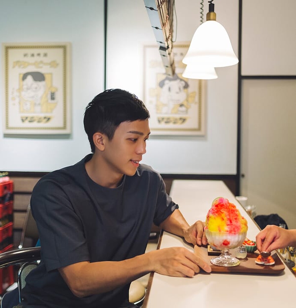 XXDanieL美拍秘訣:點一碗神奇刨冰,怎麼拍都好看!除了店內,店外頭也有復古味十足的藍色長椅和日式刨冰旗適合拍照哦。