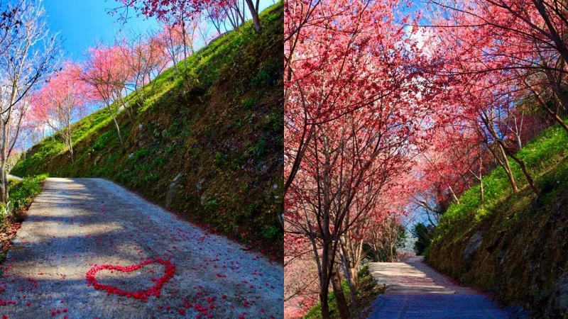 想要追櫻花的人,還有一處櫻花秘境可衝!位於南投信義鄉、台21線新中橫116公里處的山櫻花,已提早開花五至六成,將道路點綴成夢幻粉紅隧道,接下來還會有八重櫻、粉紅佳人及吉野櫻接續盛開,美到失心瘋啦!