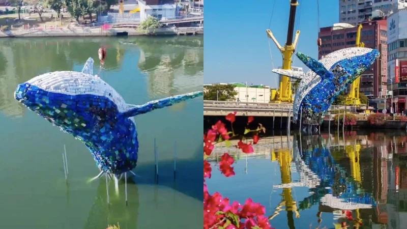 南部人必衝!全台最大水上環保裝置藝術「愛河.愛之鯨」正式亮相,15公尺高、用15噸廢棄塑膠製品打造,呼籲著重視環境生態的環保意識,從1/21~3/31限定展出。宛如凝結鯨魚翻身的震撼瞬間,更有高達20公尺的愛和音樂水舞秀,平日每晚6~9點整點演出,假日為整點與半點演出。