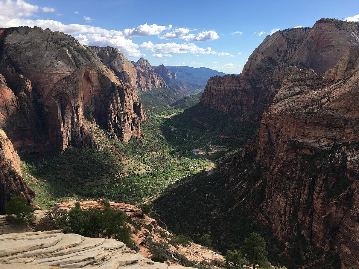 Angel’s Landing 不枉費「天使降臨之頂」這般夢幻的名稱,走在這條步道上,能見識一望無際的美麗山脈與沙漠景致,時不時還會遇到討喜的小動物們,能從上往下觀看 Zion 峽谷的壯觀景緻。但在爬升的過程中幾乎沒有休息的餘地,最後一段還需要用手拉鐵鍊,宛如攀岩一般,但往下一看就是萬丈深淵,是個挑戰度很高的步道。