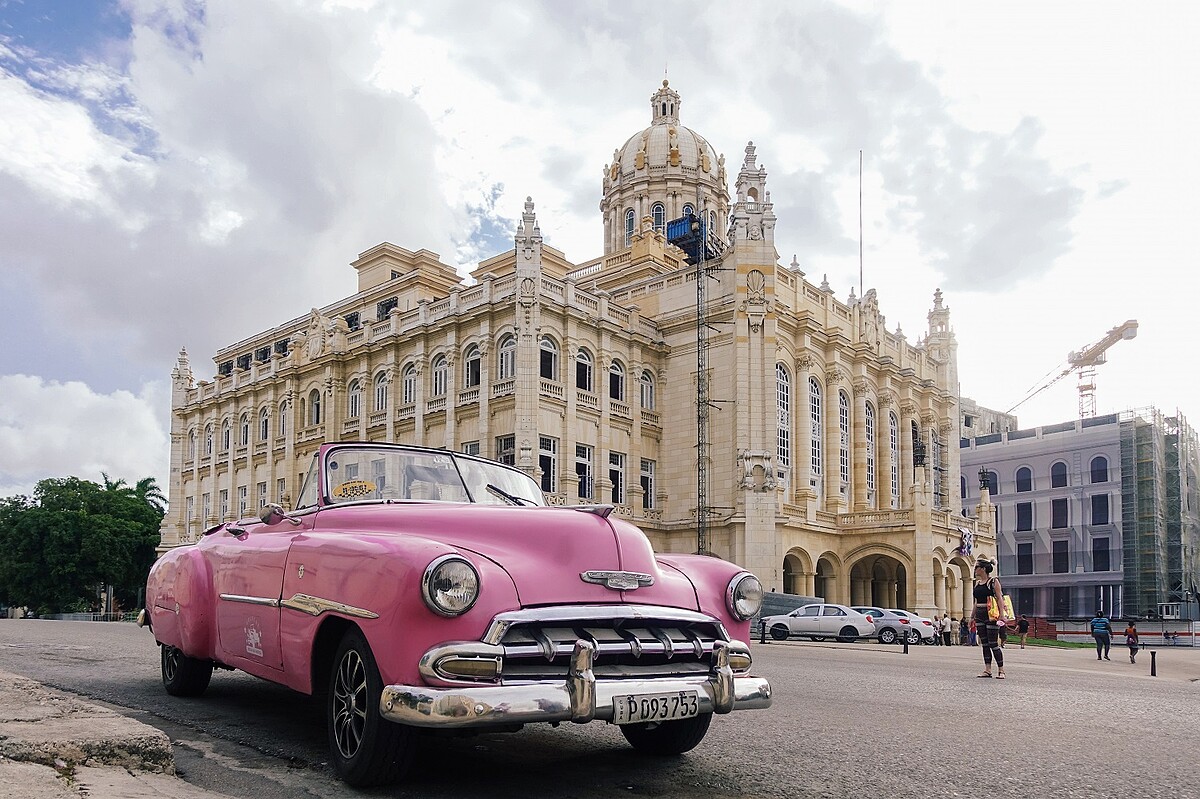 舊城區中央公園周邊是古董車的集散地,我和途中結伴數日的西班牙情侶共乘,我們選中萊姆黃、1957年的 Pontiac,落腮鬍司機得意地說,這台車可是載過瑪丹娜,還拍過電影《Papa Hemingway》呢!一小時的行程先繞行舊城區外圍,再短暫駐留哈瓦那大學、革命廣場、華人街,最後沿馬雷貢濱海大道(Malecón)迎著海風追夕陽。沿途,車上插著隨身碟的音響大聲播放音樂,刺耳的喇叭聲覺得囂張,那種被路人側目的莫名虛榮,用「拉風」這老派的形容詞再適切不過。