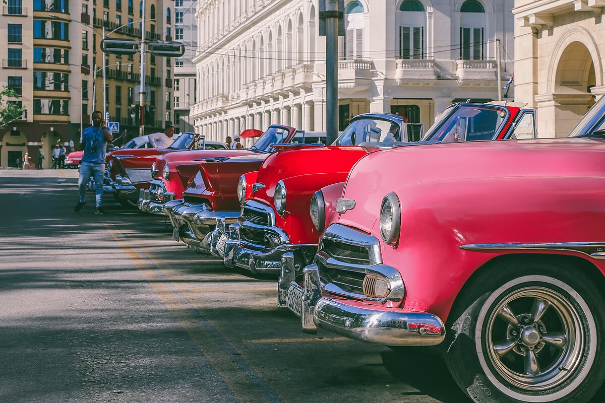 破爛樓房和各形各色古董車的排列組合,是我最喜歡捕捉的畫面。哈瓦那就像是座古董車博物館,Chevrolet、buick、Cadillac、Ford、oldsmobile…… 這些四、五○年代由美國投資客進口的氣派房車,像是在撞球檯上被打散的色球在城市竄流。這些板金繽紛耀眼的古董,因美國禁運導致零件缺乏,許多內部都成了東拼西湊的改裝車。但即便如此,搭車遊哈瓦那仍是此生必做的難得體驗,而且當然挑敞篷的。