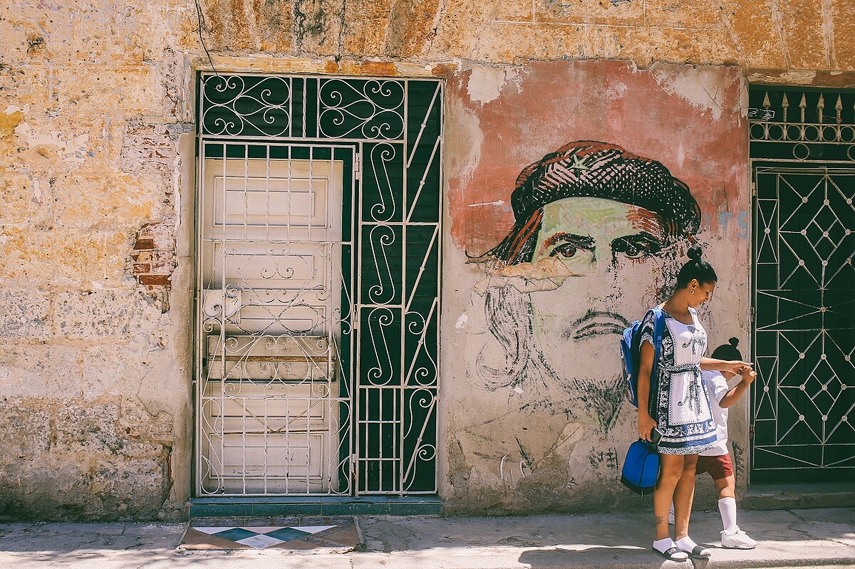 人不見得是旅途中最美的風景,但無疑構成一座城市獨特的樣貌。初次走訪中美洲的觀察,尋常的古巴人家,生活介於歲月靜好與無所適事之間,大人在路邊擺桌打牌,小孩踢足球、打彈珠玩耍,婆婆媽媽蹲坐一旁抱娃,情侶摟腰閒晃。我指著手機上的離線地圖問路,聖芳濟廣場的警察小哥露出燦爛微笑。