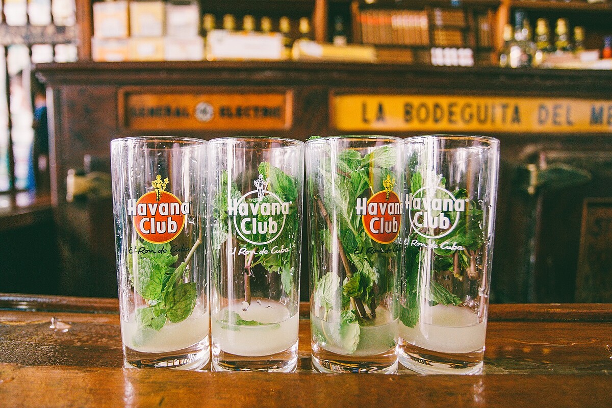 最知名的「哈瓦那俱樂部(Havana Club)」依熟成時間和製作方式,主要分為白(三年,用來做調酒)、金(五年,適合加冰塊喝)、黑(七年,直接飲用最暢快)三種等級,一瓶白蘭姆酒不到台幣一百元就能擁有,讓所有嗜酒之徒爽上心頭。此外,以蘭姆酒為基底衍生出的特別調酒,有加糖漿的 Daiguiri、混可樂的 Cuba Libre、加了椰奶和鳳梨汁的 Pina Colada,以及最受歡迎的 Mojito。在古巴,一杯Mojito就跟一瓶礦泉水差不多價錢,怎教人不怦然心動。
