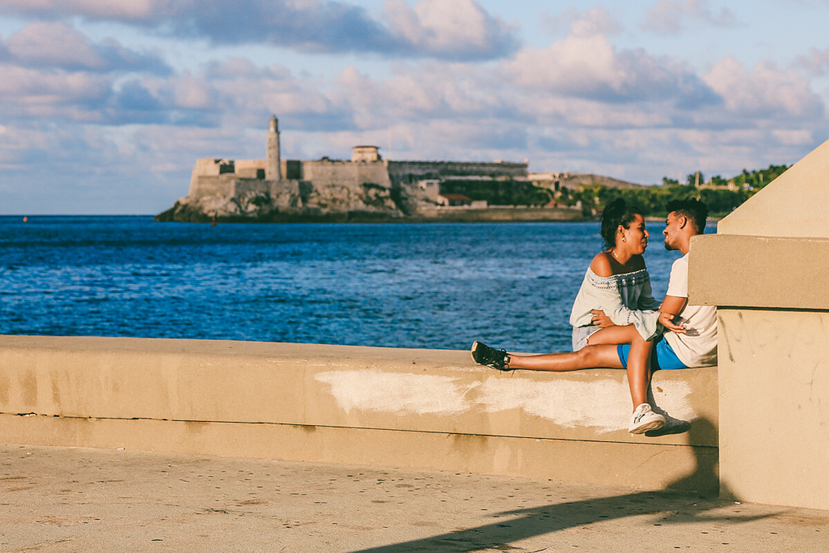 三人樂團一見到我便如蒼蠅湊上,先聲奪人演奏起經典的〈no me llores más〉,我連忙微笑搖手婉拒給小費,頭也不回繼續沿著防波堤散步。途中,釣客揮桿靜靜望向波光粼粼的大海,情侶或坐或躺相互依偎,媽媽牽著小孩有說有笑……這些自在舒服的生活感,直至金黃色的夕陽自海面暈染整條大道,哈瓦那又換上另一幕唯美浪漫的模樣。