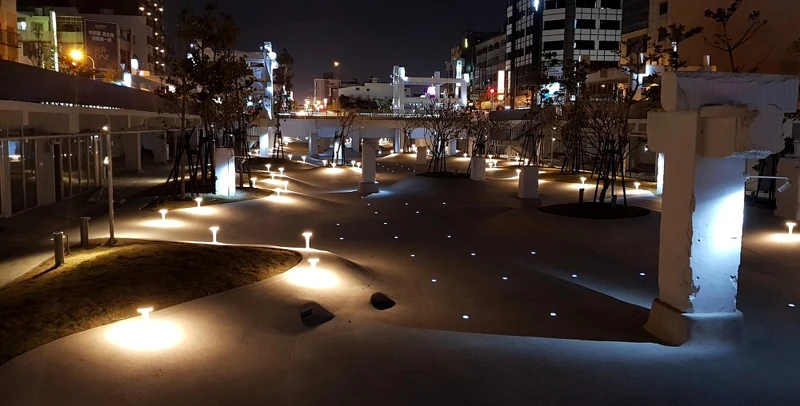 「河樂廣場」結合生態景觀及循環水系統,成為台南市區最大的親水廣場公園,是親子戲水、散步的絕佳空間。也因「潟湖」的概念設計,在日夜都能觀賞到水面的夢幻倒映,實在心曠神怡。這更被《富比士Forbes》雜誌譽為「世界7大令人期待公園」,未來還將會舉辦活動、展覽、表演,傳承府城的人文氣息。