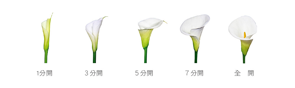 挑選海芋也大有學問!大致可略分為1分開、3分開、5分開、7分開及全開,1分開的海芋不適合採摘,建議選擇3~5分開的海芋。帶回家後放置陰涼處,得勤於換水、每次換水要將花莖基部切除1~2公分,也可以用切花保鮮劑、太熱時在水中加入冰塊延長壽命,可讓3~5分開海芋有約10天賞花期。