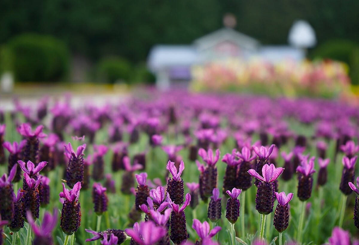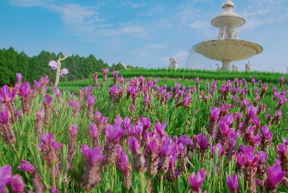 每年3~4月正是九族文化村「水沙連歐洲宮廷花園」最美的時節,褪去粉嫩的面貌、迎來百花爭艷的繽紛色調。即日起具舉辦至4/5的「紫戀薰衣草季」,會看到62公頃包含金魚草、四季海棠、香瑾、一串紅等不同花種爭相盛開。最美的當屬10萬株西班牙薰衣草的交織成紫色花海,在陽光灑落、微風吹拂下,宛如置身歐洲。