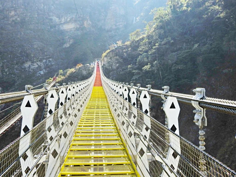 特別的是,採取階梯式設計的橋面共有420階,每50公尺便會變換一種顏色,為吊橋添上如彩虹般鮮豔光譜色調,遠遠看也像是一道彩虹懸掛在山谷之間,勢必將成為IG網美打卡景點。