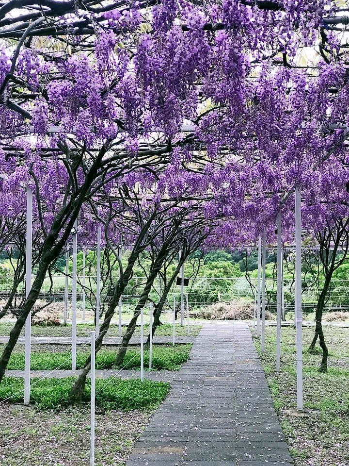 位於新北市淡水區的「紫藤咖啡園」,是全台最大紫藤花園,園主研究紫藤花超過30年、多次與日本園藝人員交流,是唯一被日本認可的紫藤園。為了細心呵護難以照顧的紫藤花,每年都只有在3月底至4月初的花期開放,就為了讓台灣人不用出國,也能享受置身日本的夢幻景象。