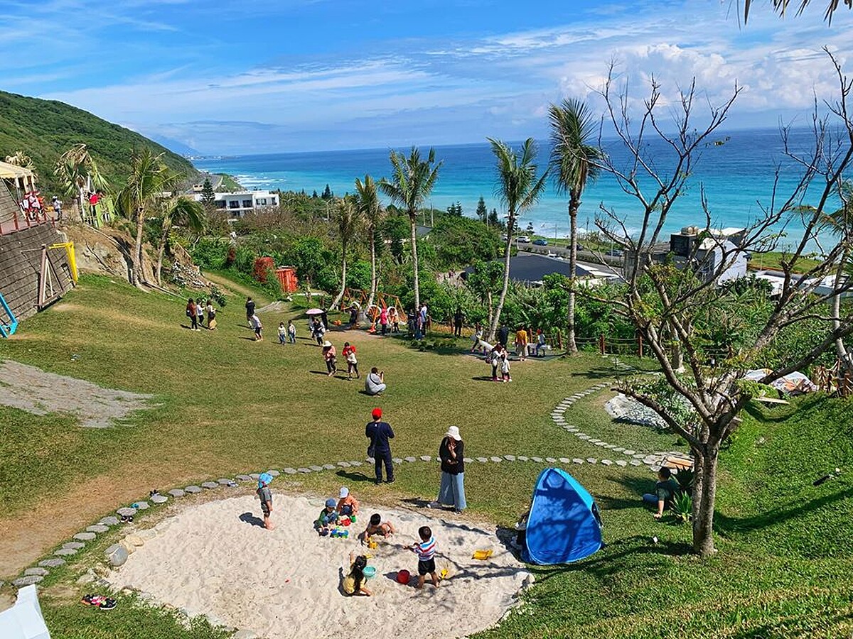 令人舒心的還有戶外遊憩區,在寬闊的草地上可以讓小朋友盡情放電,滑草、戲水、玩沙等多樣活動,徹底體驗大自然之美。還有月亮鞦韆、愛心椅能拍網美大片。想放空的人,就隨意選擇繽紛色系的懶骨頭躺下,配著藍天白雲映入眼簾,就是最美好的人生片刻。