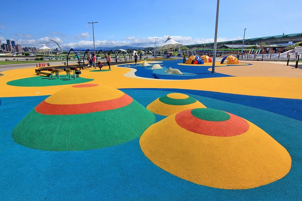 假日想帶著家中小朋友去放電,但又不想在室內空間人擠人,就直奔大佳河濱公園囉~隨著第三期工程剛於兒童節前夕完工,使得遊戲場成為「全國最大的河濱共融式遊戲場」!繽紛色系、多元設施,根本是河濱版的「兒童新樂園」。