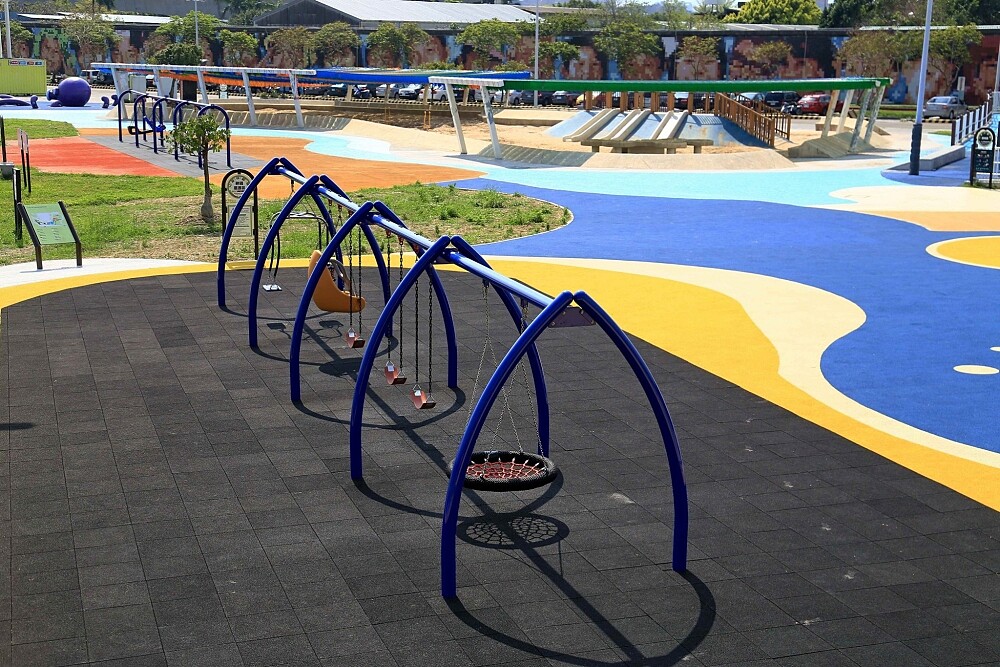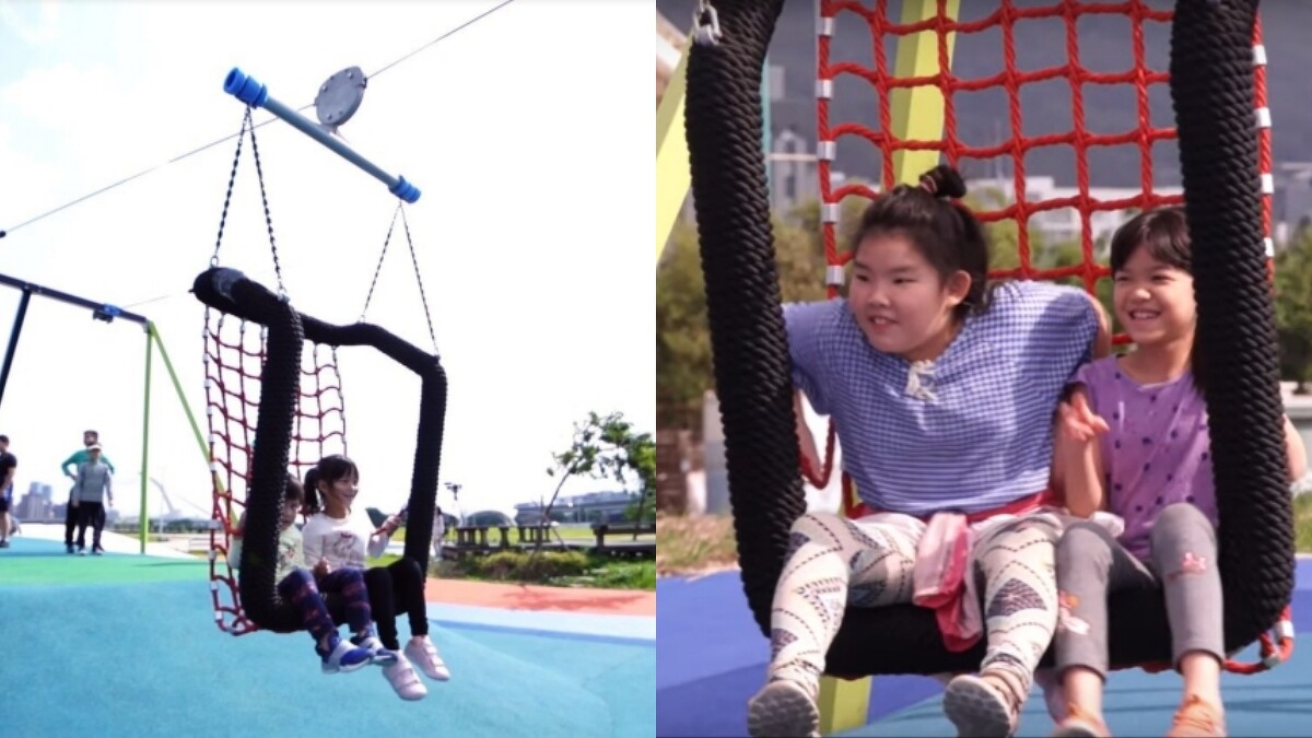 重要的當然是多元遊樂設施!光是鞦韆就共有5種多元,包括讓家長與小孩面對面的「親子鞦韆」、能讓多人乘坐的「飛盤鞦韆」、「雙人鞦韆」、「坐墊型鞦韆」及一般鞦韆,絕對能滿足不同歲數小朋友。遊戲場鋪面也增加厚度與彈性,更通過場域安全檢驗,家長們大可以安心。