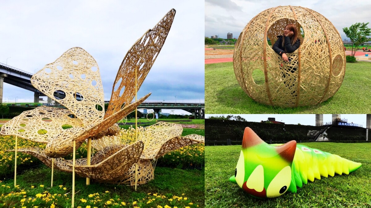 已成為新北市每年慶典的「2020 新北河濱蝶戀季」,今年主題為「蝶舞情深」,突破往年大面積平面花草佈置,將蝴蝶、昆蟲都立體化,不僅是必拍裝置藝術,更呈現出春天繁茂的美好景象。有3公尺高「大紫蛺蝶」造型立體竹編、毛毛蟲座椅及蟲卵造型竹編,還有可愛萌呆的螞蟻造型竹編三姐妹使人眼睛一亮。