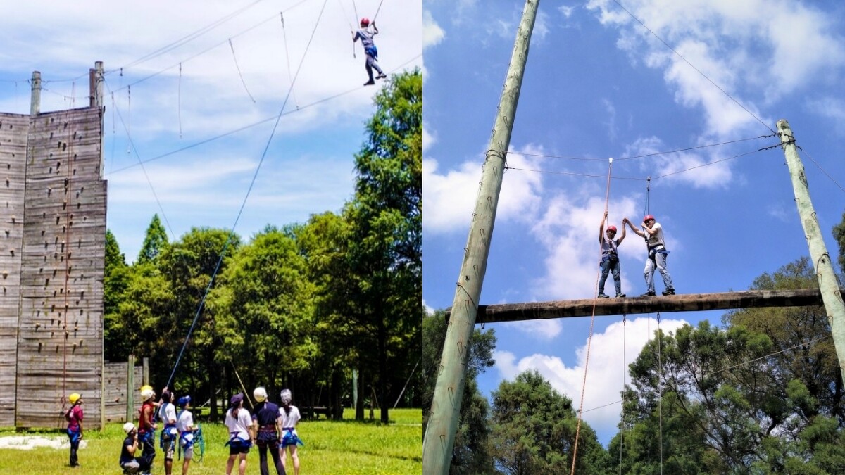位於新竹關西的六福莊,即日起至6/20,與台灣外展教育基金會合作推出「2020好膽來玩‧極限high體驗專案」,只要在5/2、5/9、6/21、6/28入住剛果藍天客房就能玩「高空繩索體驗」,在高度約3~5層樓的高空中,得要很大的勇氣才能邁開雙腳向前行。