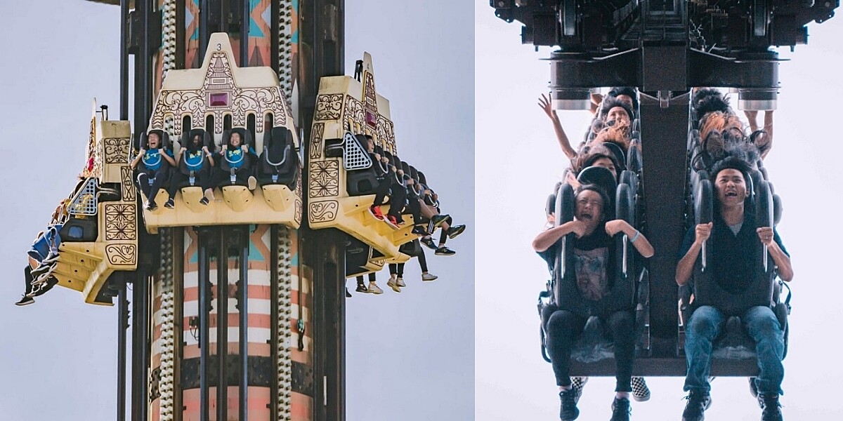 度過這兩天一夜的行程還玩不過癮,不妨再加碼一晚,隔天就去六福村挑戰「魔王級」遊樂設施!像是坐上最高時速高達122公里的「笑傲飛鷹」螺旋衝天,或是在「大怒神」上從17樓高自由落體重力加速度來回升降,肯定讓你尖叫連連,膽大的人快點來趟紓壓之旅吧。