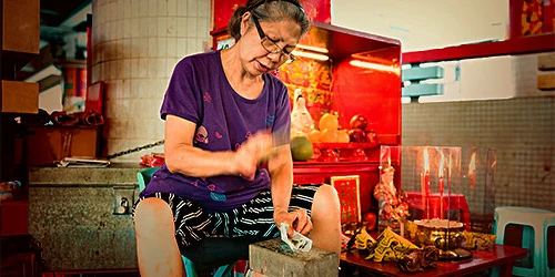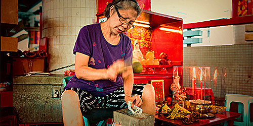 銅鑼灣的鵝頸橋底就是打小人的秘密基地。這裡面對三岔路口,是最佳的「三煞位」,也是最理想的打小人地點。打小人時,老婆婆會燃點香燭、擺出木椅,築成一個小小的攤子,然後祭出剪紙白虎,拿出拖鞋來把小人打走!打完後包你轉運!