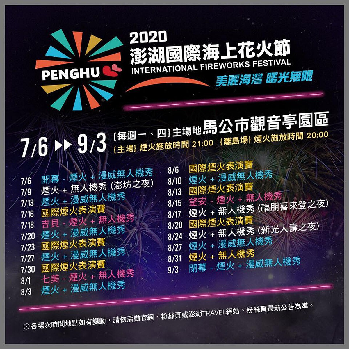 「2020澎湖國際海上花火節」資訊: