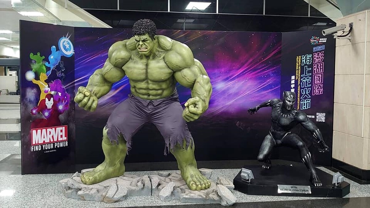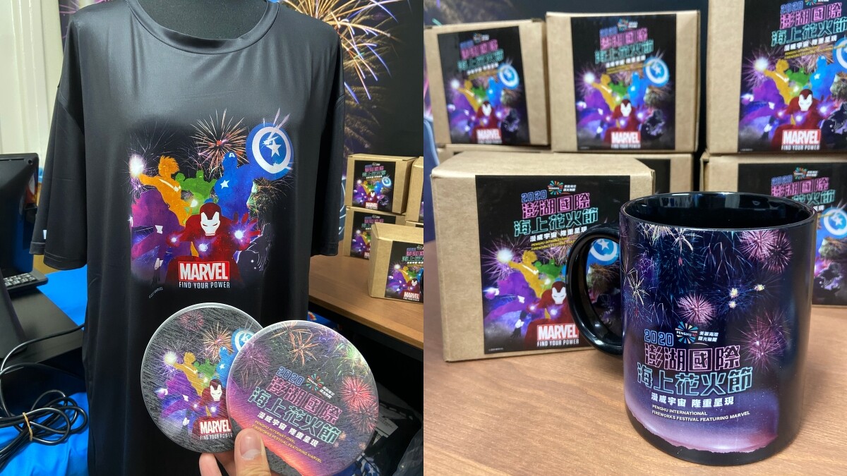 不只有無人機表演,深耕美系玩具與電影授權商品的「野獸國」,更出借1比1等身高的浩克、黑豹雕像,只要到澎湖機場就能跟他們合影。但千萬要記得,請勿攀爬、觸摸、破壞,一起共同維護超級英雄的完整。活動現場也打造貨櫃屋,販賣T恤、帽子、馬克杯、杯墊等限定聯名商品,看完煙火不妨把這份感動收藏起來。