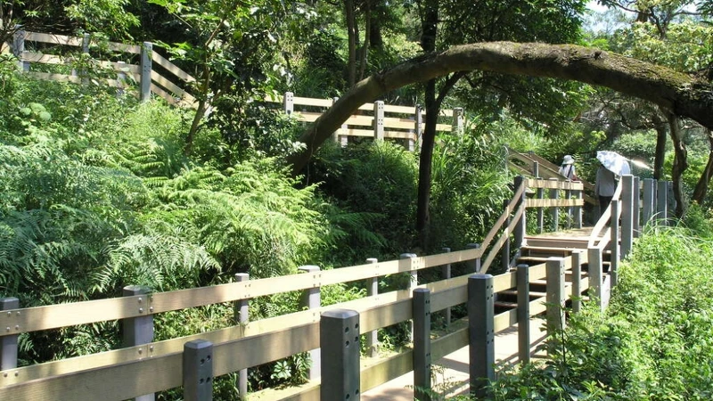 從捷運劍潭站下就直達入口的「劍潭山親山步道」,可說是超好入門!海拔僅153公尺,走起來相當輕鬆自如。沿途有許多涼亭與空地,隨時可以停下來休息,還有一處開闊視野的觀景區,因能不時看到飛機略過有了「觀機坪」稱號,還能遠眺河濱公園、基隆河、觀音山,是難易度超低的步道選擇。