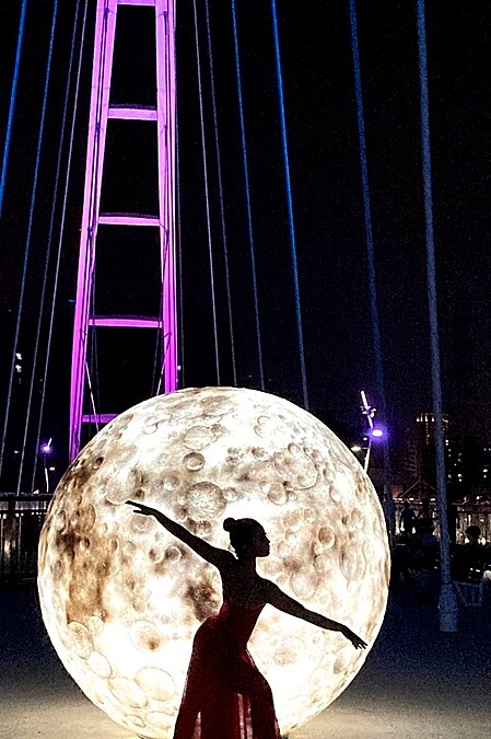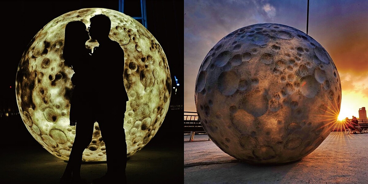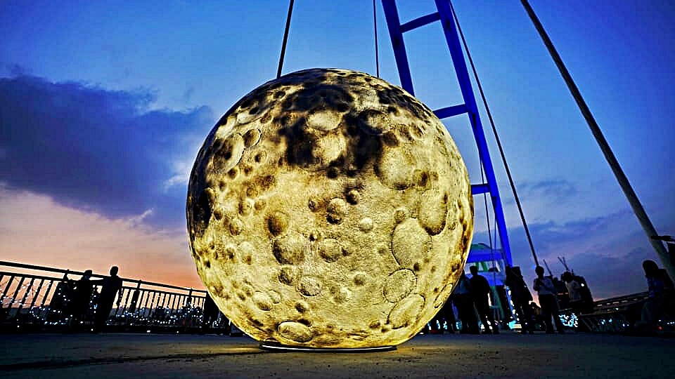 以「星月,同心攜手」為主軸,打造了一顆直接231.6公分的巨大月亮,大小是月球的150萬分之1。細節也相當用心仿真,表面充滿隕石坑、佈滿陰影,還原程度相當細膩逼真,是真實月球的縮小版本。