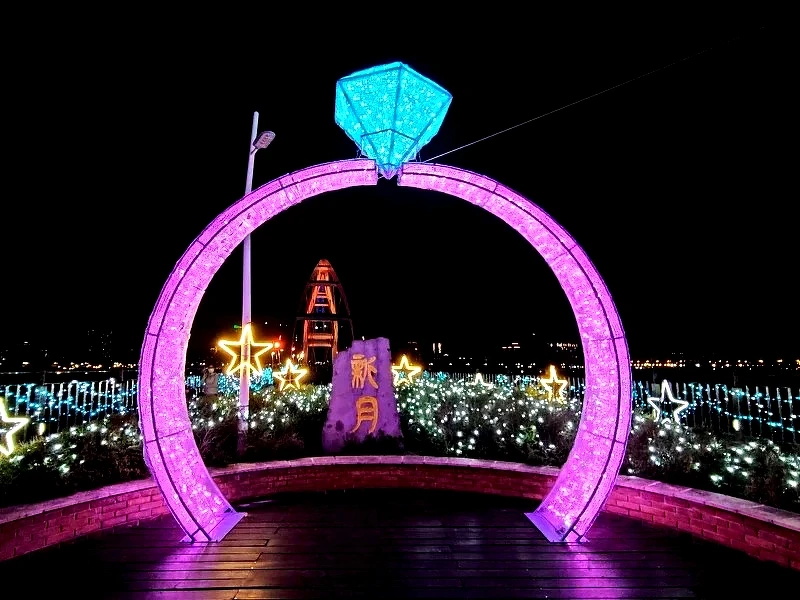 新北最新約會景點!新月橋出現「2公尺大仿真月亮、全台最大鑽戒」,浪漫指數破表