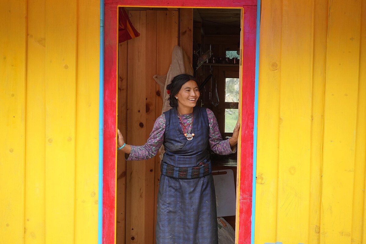 嚮導柏德利說:「怪了,往年這時候雨季已經結束,怎麼現在雨量還多到嚇人?」全球暖化,氣候異常囉,不然呢?我心想。把所有未知怪到氣候變遷,是最省事的方法。隱谷過去是西藏屬地,所以當地藏民居多,沿路可見五色旗隨風飛揚,身著傳統藏服的駝背老婦,手持轉輪在山上飛快行進;拖著鼻涕、頭髮沾粘的小孩,手牽手踩著小雨鞋放學回家。在山上,下雨時是陰濕地獄,但天氣好的時候,我們像闖進桃花源,田裡紫色藜麥跟黃色玉米在陽光下閃閃發光,石牆後的院子裡,長毛狗滿足趴在稻草堆上休息。
