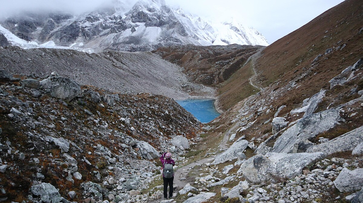 走在馬納斯魯腰間 山的巍峨讓人感覺渺小
