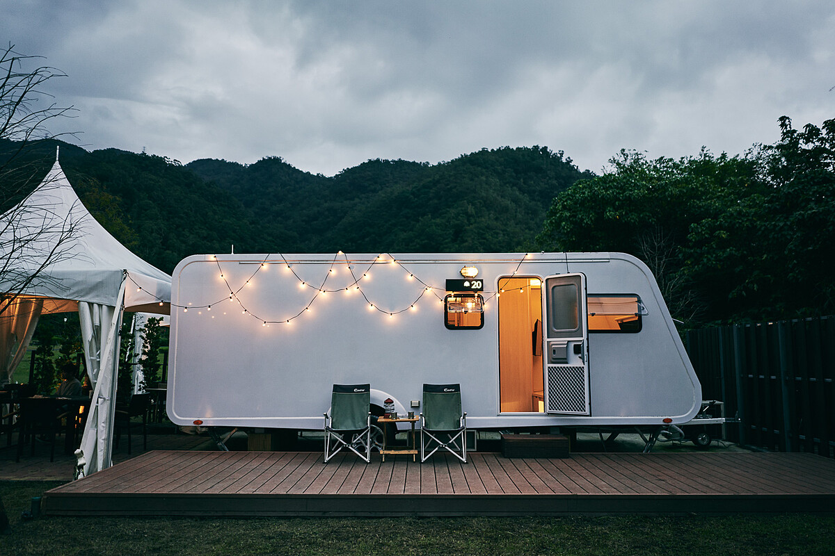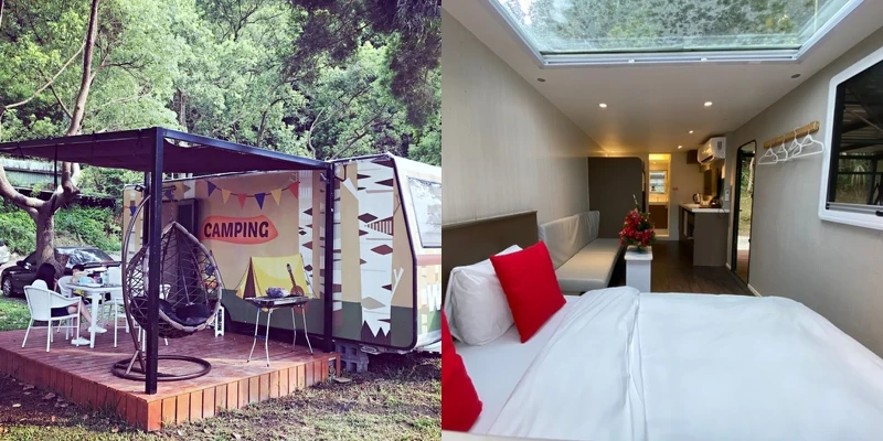 住過礁溪老爺酒店,那有嘗試過五星級的露營體驗嗎?「得天露營體驗區」有20台露營車座落五峰旗山林間,有冷氣空調、舒服床鋪、浴廁分離空間、小巧客廳、具備隔音設備的獨立靜謐空間,一卡皮箱就能入住。