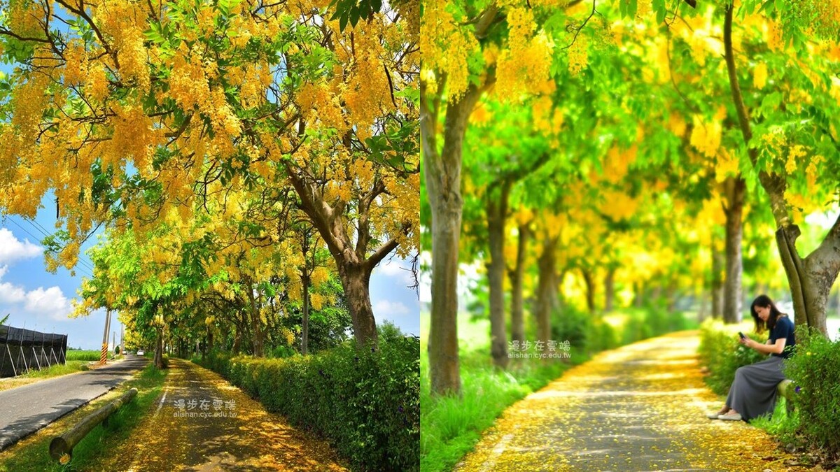 每年夏天除了衝海邊玩水,喜歡賞花的人,絕對不能錯過在5月下旬、6月登場的「黃金雨」!位於嘉義的「蒜頭自行車道」現在已經能看到這幅夢幻畫面,整條自行車道從兩旁樹枝,到灑落地上的點點花瓣,都是明亮鮮豔的金黃色,成為夏季限定美景,值得找時間去好好欣賞。