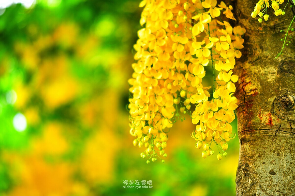 「黃金雨」其實是泰國國花的「阿勃勒」盛開的絕美景致,因成串、金黃色的花朵,在微風吹拂時落下花瓣,便會產生如「黃金雨」灑落般的浪漫畫面,也會將路面染成金色夢幻大道,全台灣有多處欣賞此美景的地點,個個都令人流連忘返。