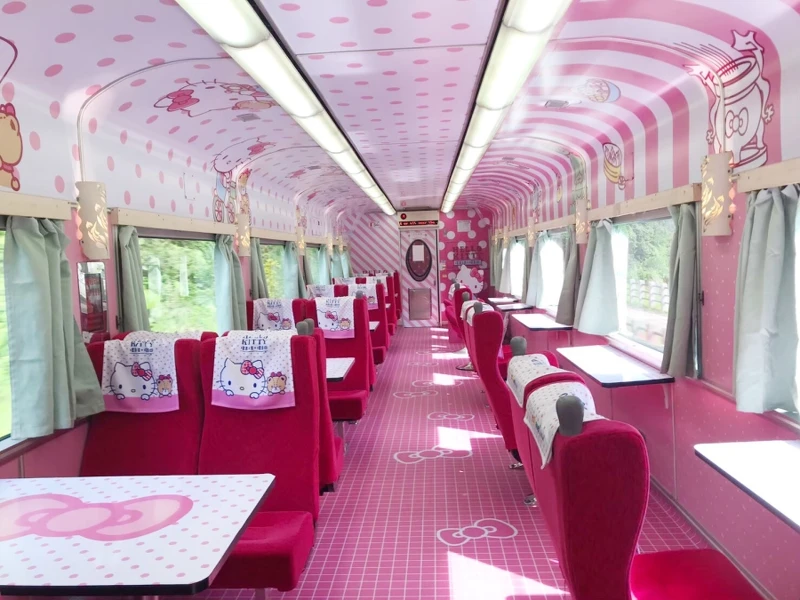 在2019年,易遊網聯手台灣三麗鷗、台鐵打造一台史上最萌列車「環島之星Hello Kitty繽紛列車」!車廂上充滿台灣元素的全新彩繪,車內的豪華座椅、觀景餐車等更是滿滿的Hello Kitty圖案;另外在車上還能歡唱卡拉OK、活動車廂能做DIY與不定期活動,讓搭車時光一點都不無聊。