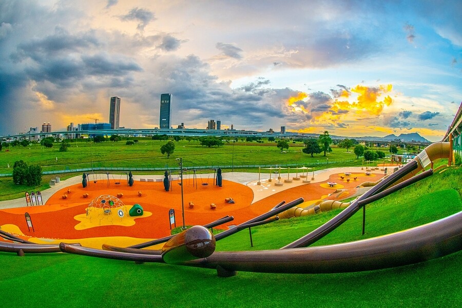 新北大都會公園已成新北市人超熱門的遊戲景點,繼先前的幸運草地景溜滑梯、7米高瀑布滑草場後,2020年又打造全台最大、全齡化共融式的「堤坡滑梯樂園」!占地4公頃、總長800公尺、寬50公尺,並分為A、B、C、D四大主題,滿滿豐富遊樂設施,保證玩到失心瘋!