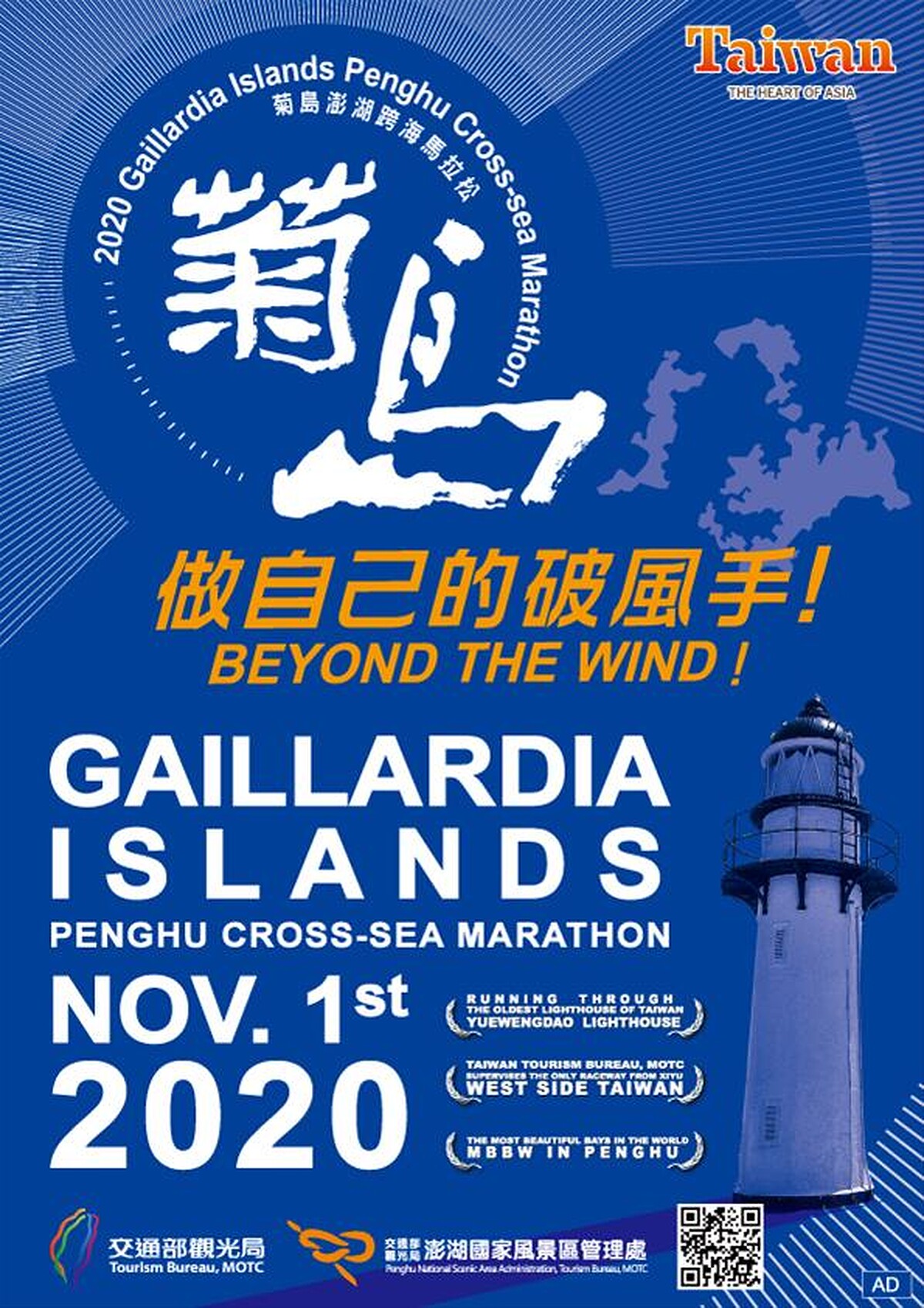 另外原訂於11/1舉辦的「2020菊島澎湖跨海馬拉松賽」則將如期舉行。賽道路線融合離島與澎湖特有元素,沿途將經過西嶼、白沙、中屯及馬公本島,可以一邊欣賞漁翁島燈塔、大菓葉柱狀玄武岩、二崁聚落、跨海大橋及中屯風力園區等旅遊景點,為激烈的馬拉松賽事增添美好畫面。